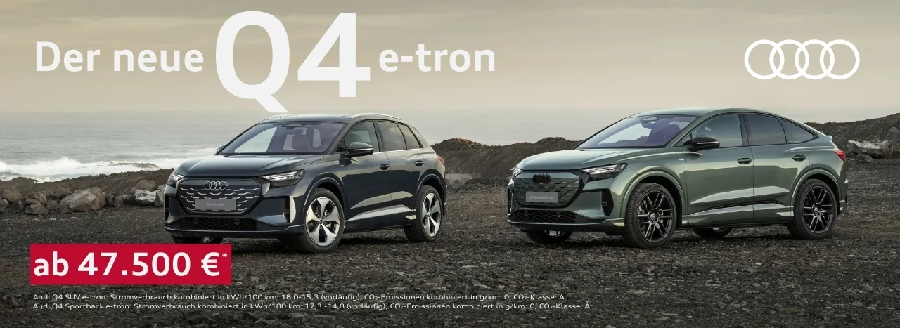 Der neue Audi Q4 e-tron präsentiert sich in geschärfter Form – moderner, digitaler und alltagstauglicher als je zuvor. Mit seinem markanten Exterieur im neuen Design, innovativen Lichtsignaturen und einem deutlich aufgewerteten Interieur setzt er neue Maßstäbe in seiner Klasse. Auch technologisch zeigt sich das Modell auf dem neuesten Stand: verbesserte Reichweiten, optimierte Ladeperformance und intelligente Assistenzsysteme sorgen für ein souveränes Fahrerlebnis.