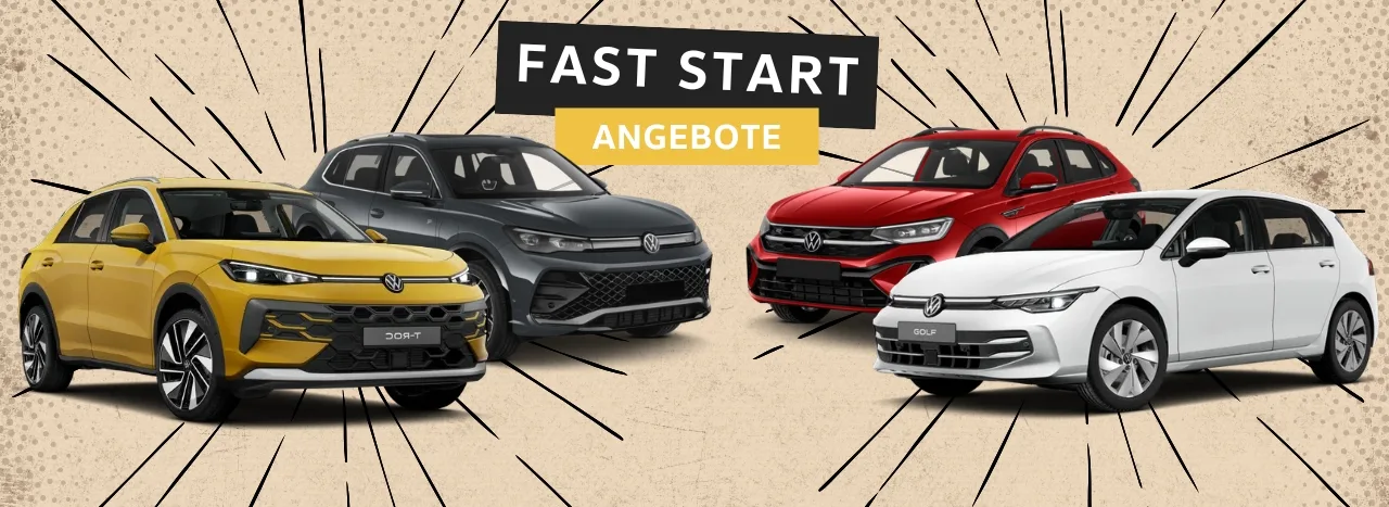Mit Fast Start sichern Sie sich jetzt attraktive VW PKW Neuwagenangebote, die keine langen Wartezeiten kennen. Ob kompakt, komfortabel oder vielseitig – ausgewählte Volkswagen Modelle stehen kurzfristig verfügbar für Sie bereit.